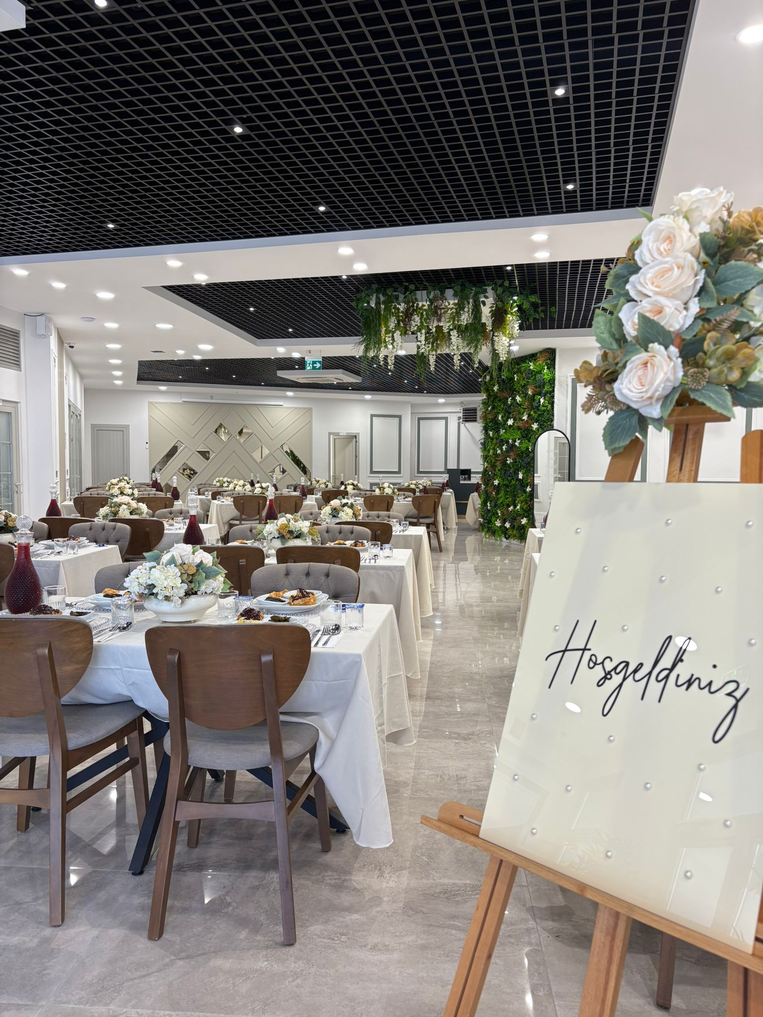 Şık tasarımı, kusursuz hizmeti ve özel menüleriyle unutulmaz anlara ev sahipliği yapıyoruz. Nişan, kına, mezuniyet ve tüm özel günleriniz için doğru adres.